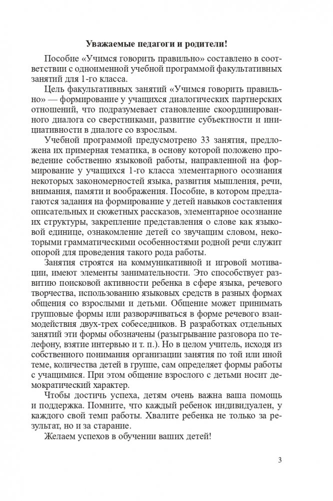 Учимся говорить правильно. 1 класс. Факультативные занятия. Пособие для учителей