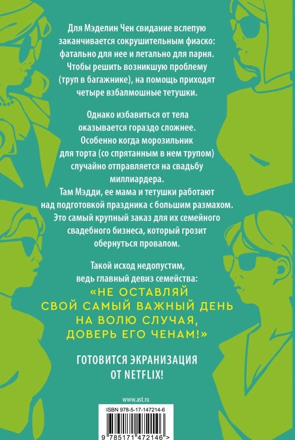 Для Мэделин Чен свидание вслепую заканчивается сокрушительным фиаско: фатально для нее и летально для парня. Чтобы решить возникшую проблему (труп в багажнике), на помощь приходят четыре взбалмошные тетушки.