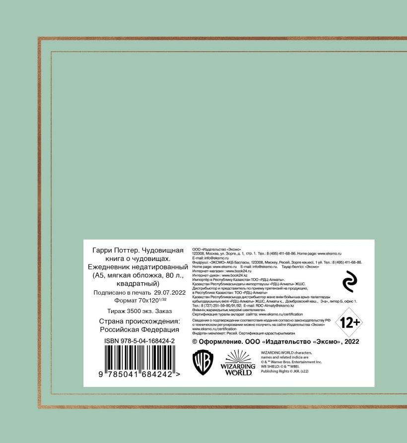 Гарри Поттер. Чудовищная книга о чудовищах. Ежедневник недатированный (А5, мягкая обложка, 80 л., квадратный)