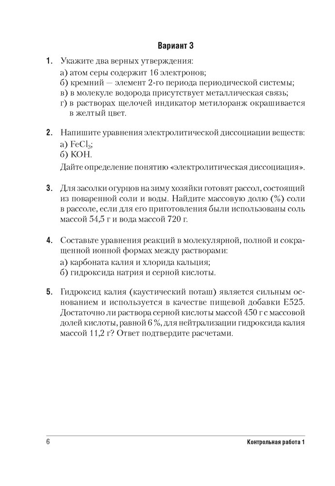 Сборник содержит контрольные и самостоятельные работы по химии для 9 класса, представленные в четырех вариантах. Все варианты включают разноуровневые задания, которые разработаны согласно нормам оценки результатов учебной деятельности учащихся.