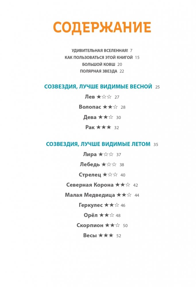 С давних времён люди давали волю воображению и видели в скоплениях звёзд различные фигуры и давали им имена. Со временем наука собрала разные представления в одно целое – и теперь у нас есть цельная и красивая картина неба! Давай посмотрим на неё! С этой книгой ты на практике научишься находить и распознавать простые и сложные созвездия, выяснишь, как рисунок звёздного неба зависит от сезонов года, а также узнаешь, на каких мифах и легендах основаны названия созвездий. Словарь и алфавитный указатель в конце книги помогут тебе запомнить имена всех звёзд!