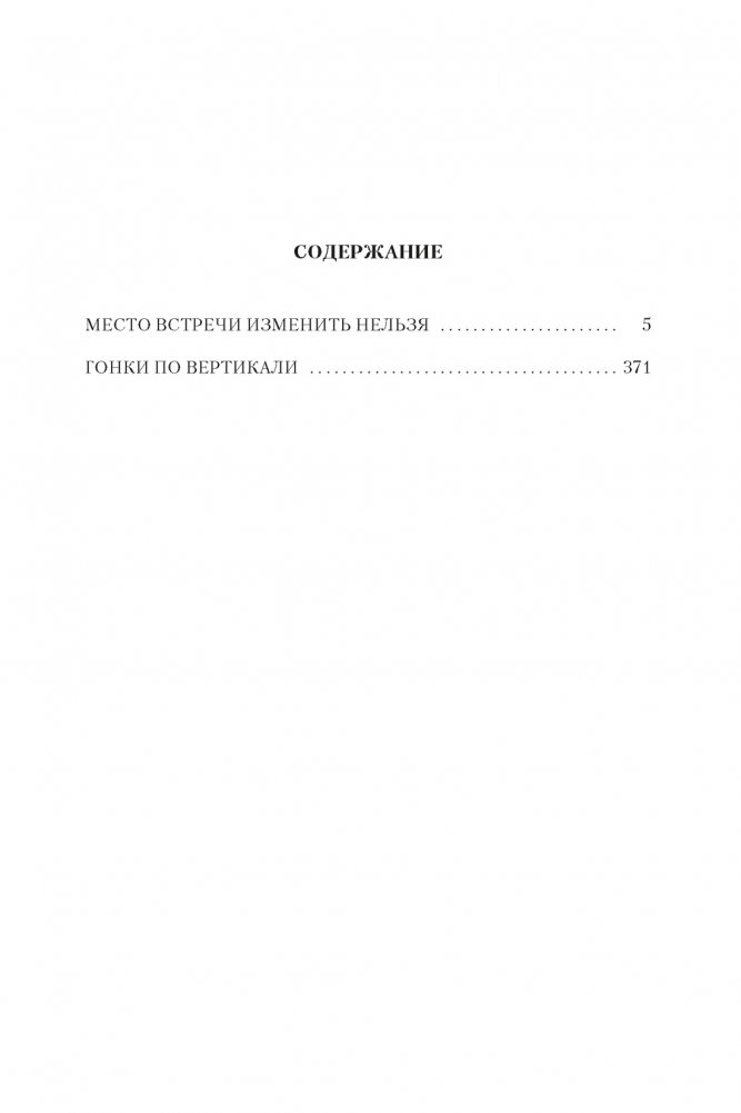 «Место встречи изменить нельзя», бестселлер классиков российской литературы братьев Вайнеров об оперативных сотрудниках Московского уголовного розыска (МУРа) и их борьбе с преступниками, в особом представлении не нуждается. Эта легендарная книга (1975) стала событием в литературной жизни страны, покорив миллионы читателей, а снятый по ней телефильм (1979) обрел всенародную любовь многих поколений зрителей. Тема этического противостояния Жеглова и Шарапова, таких непохожих друг на друга напарников-соперников, актуальна и сегодня. А вечная мечта человечества — Эра Милосердия, которой посвящен роман, по-прежнему волнует читателей во всем мире. Роман «Гонки по вертикали» (1974) тоже был успешно экранизирован. В фильме 1982 года сыграли такие звезды нашего кинематографа, как Андрей Мягков и Валентин Гафт. В картине сохранилась главным образом сюжетная канва: история противостояния следователя Стаса Тихонова и вора Лехи Дедушкина по кличке Батон. В книге за этой прямолинейной формулой живут два далеко не схематичных героя-антагониста со своими сомнениями, отчаянием, одиночеством. Встретятся читатели и со знаменитым героем из романа «Место встречи изменить нельзя» — Шараповым, ставшим теперь подполковником МУРа.