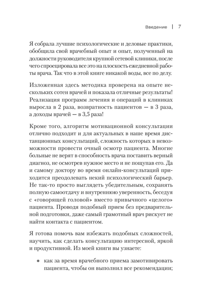 Во второй части книги автор предлагает правила врачебного приема, которые помогут всем врачам стать еще более успешными. Правила выстроены в четкую схему, а сам прием — в пошаговую инструкцию, в последовательное выполнение действий.