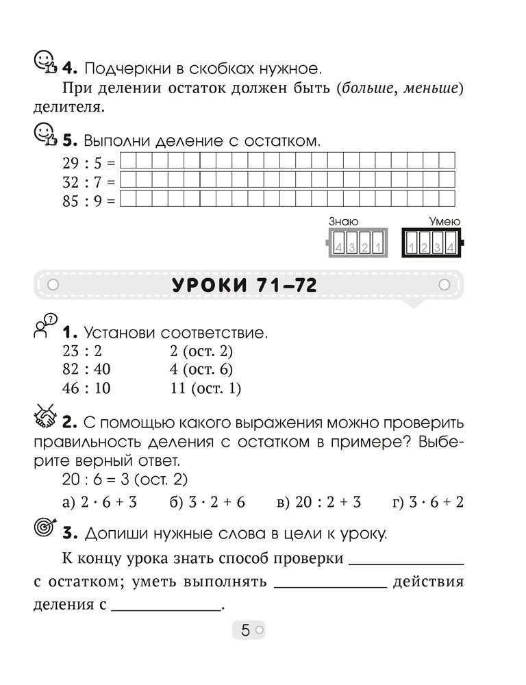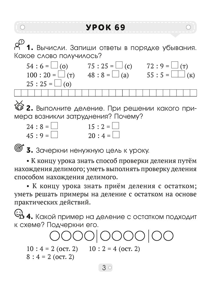Издание соответствует учебной программе и учебному пособию по математике для 3 класса и имеет поурочную структуру согласно календарно-тематическому планированию. Каждый урок содержит пять заданий, которые помогут учащимся овладеть универсальными учебными действиями: ставить цели, находить и систематизировать необходимую информацию, самостоятельно оценивать свои навыки и достижения. Тетрадь может использоваться на уроках для закрепления знаний, на факультативных и стимулирующих занятиях, при самостоятельной работе дома.
