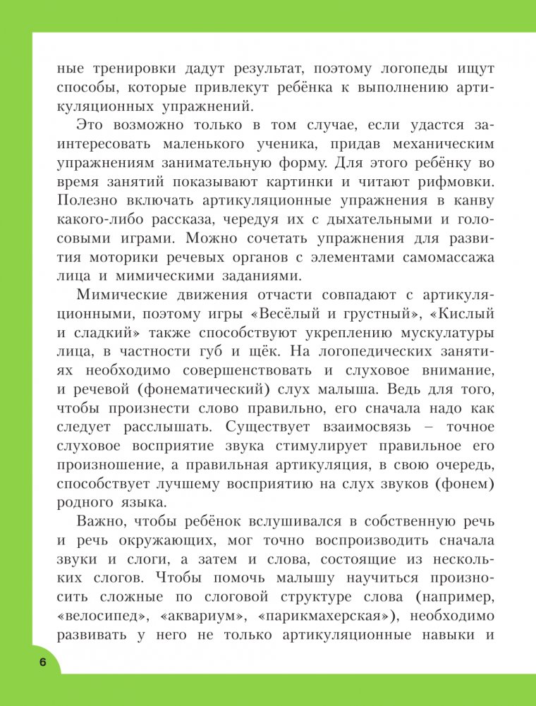 "Логопедические занятия для формирования правильной речи: смотри и повторяй" — развивающая книга О. А. Новиковской, известного логопеда, успешного педагога-практика с 40-летним опытом работы, автора эффективной методики раннего развития, получившей признание и одобрение педагогов и родителей. Пальчиковые, дыхательные, голосовые, артикуляционные упражнения и нейро-игры позволяют развить внимание и интеллект, голосовые возможности ребёнка, потренировать мелкую моторику и память, сформировать чёткую и выразительную дикцию.