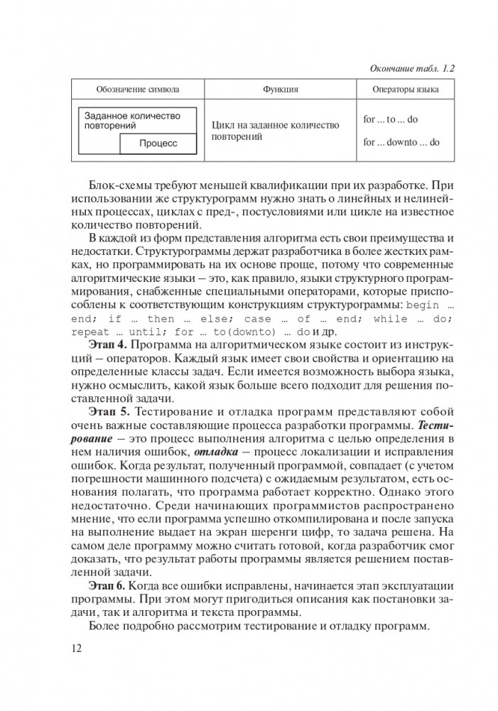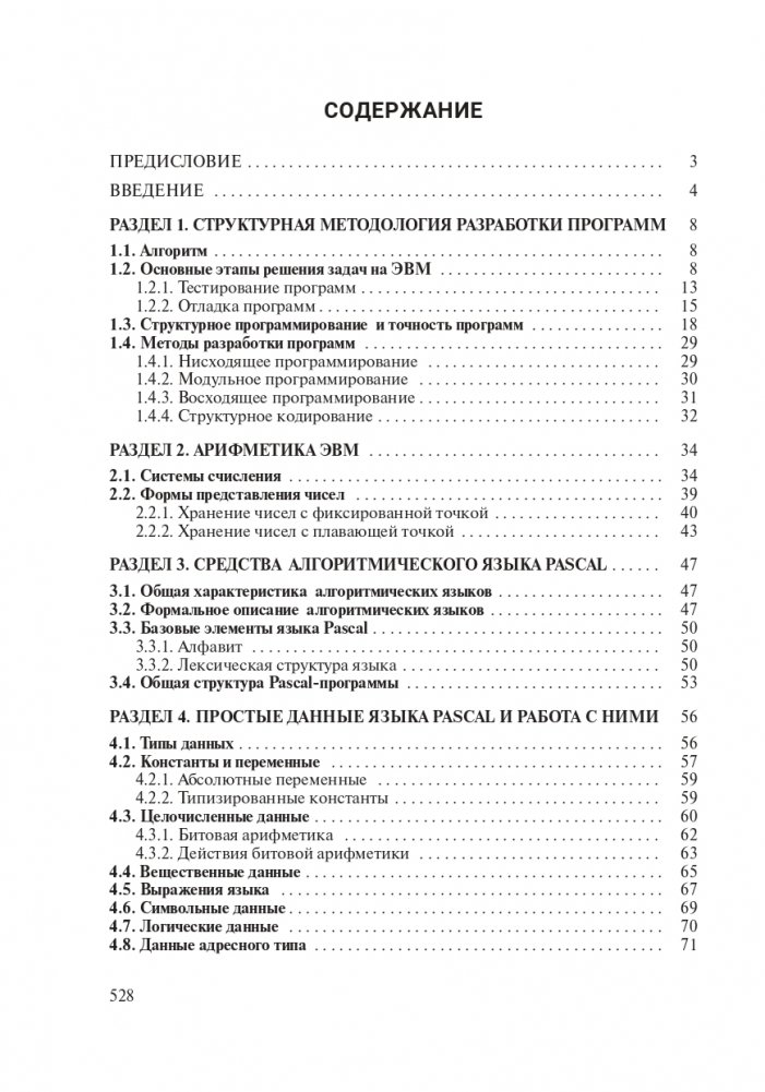 Представлено последовательное изложение основ программирования на примере языка Pascal. Рассматриваются структурная, модульная и объектно-ориентированная технологии программирования, методы проектирования и отладки программ, управляющие операторы, основные структуры данных и методы их обработки. Полностью соответствует типовой программе «Методы программирования и информатика» для научно-педагогического направления. Наряду с теоретическим изложением материала широко представлены иллюстративные примеры. Книга содержит задания для самостоятельной работы. Пособие также можно рекомендовать при подготовке школьников к олимпиадам по программированию.