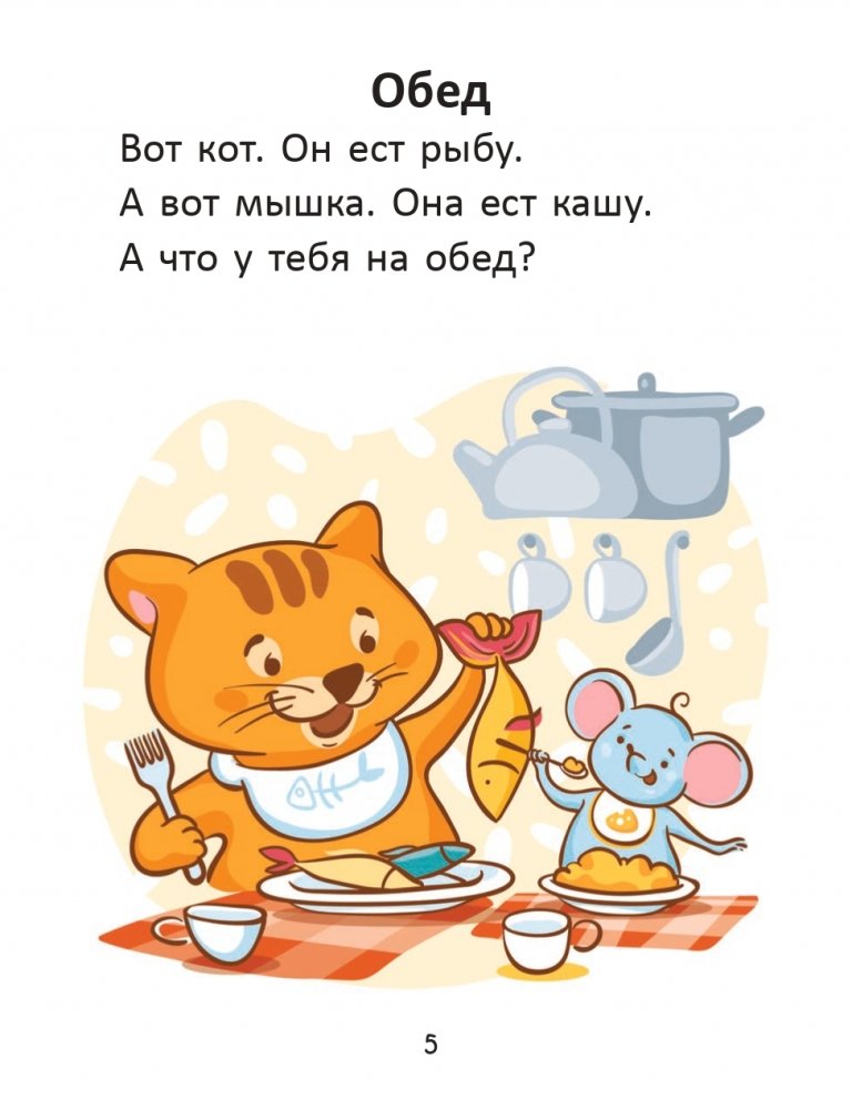 Книга предназначена для детей, уже знающих буквы и слоги, и направлена на формирование навыка осмысленного беглого чтения. Тексты построены по принципу усложнения: сначала чаще используются слова с 1-2 слогами, а также с превалирующим количеством гласных, короткие предложения в одну строку. Чтобы ребенок мог соотносить написанное и нарисованное, книга снабжена большими красочными иллюстрациями.