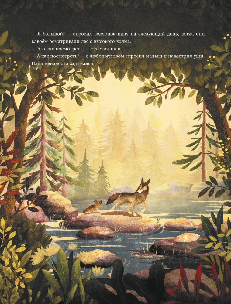 Задавая папе вопросы, волчонок многому научился. Часто всё зависит от обстоятельств. Но есть одна вещь, которую ничто не может изменить: то, как сильно папа-волк любит своего волчонка.