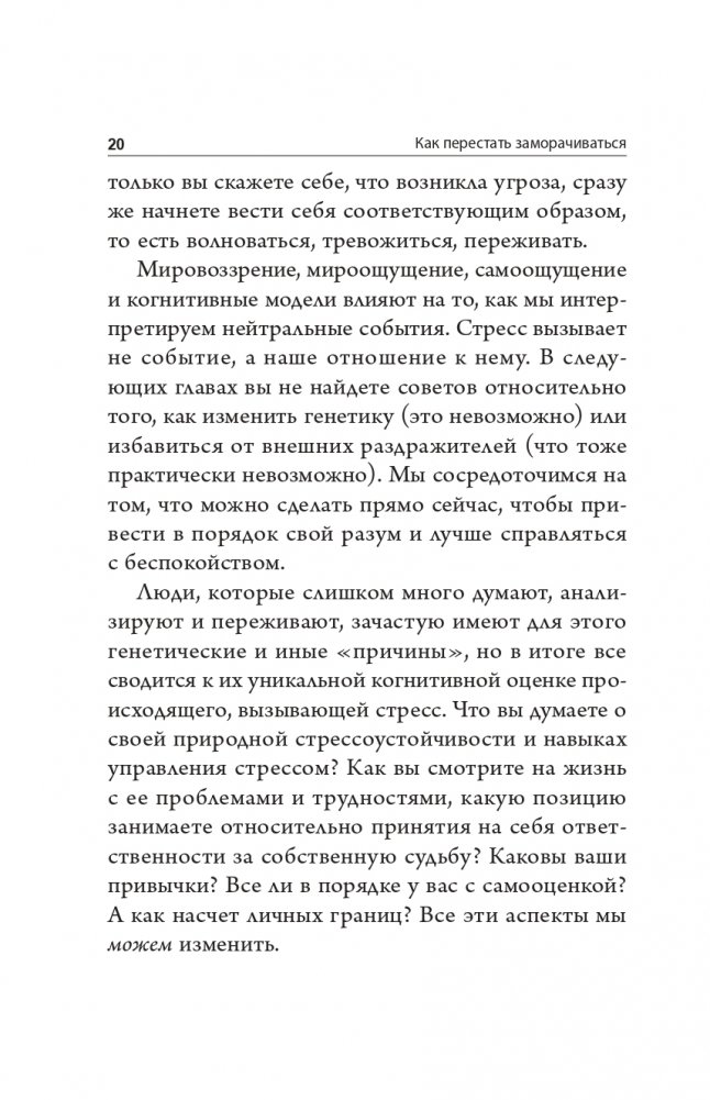 «Как перестать заморачиваться» — это книга о том, как разобраться со своими проблемами, которые зачастую создаем мы сами, и вырваться из тисков тревожности и стресса.