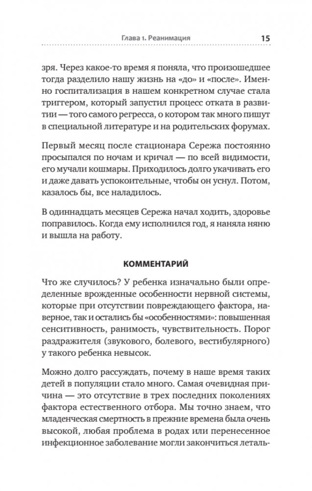 Когда ребенку ставят диагноз расстройство аутистического спектра, родители впадают в ступор. Аутизм не лечится, потому что не является болезнью, — говорят врачи. Эта книга рассказывает о превращения неговорящего, недоразвитого ребенка с диагнозом РАС в ребенка «уровня условной нормы», что означает возможность вести нормальную жизнь. Обычная семья, живущая в одном из провинциальных городов России, прошла этот невероятный путь за пять лет.