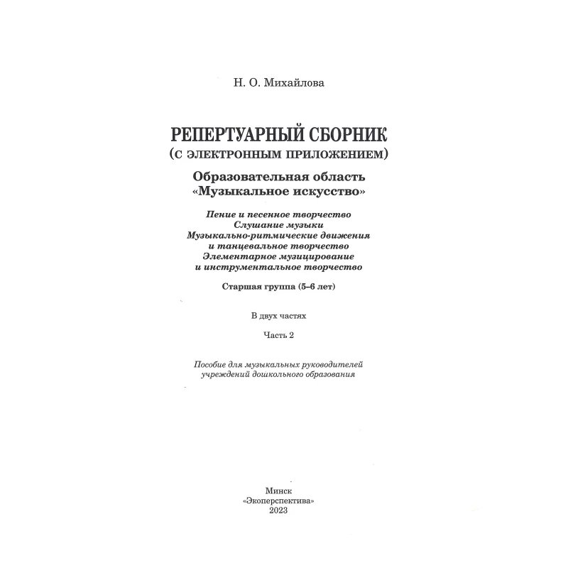 Репертуарный сборник (с электронным приложением). Образовательная область "Музыкальное искусство". Пение и песенное творчество, слушание музыки, музыкально-ритмические движения и танцевальное творчество, элементарное музицирование и инструментальное творчество. Старшая группа (5-6 лет). Часть 2