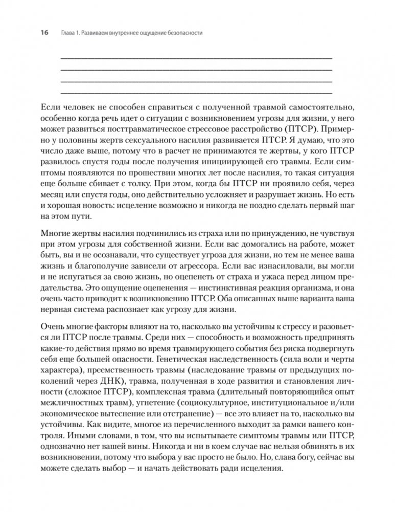 Опираясь на эффективные техники соматической терапии, связанные с телом и разумом, эта книга представляет собой пошаговое руководство по преодолению психологических последствий насилия, повышению позитивной осознанности тела и вашей жизнеспособности. Вы найдете инструменты, которые помогут вам создать внутреннее чувство устойчивости, откроете для себя способы установления границ; выйдете за пределы сильных чувств, таких как стыд, страх и вина; и научитесь эффективно справляться с триггерами.
