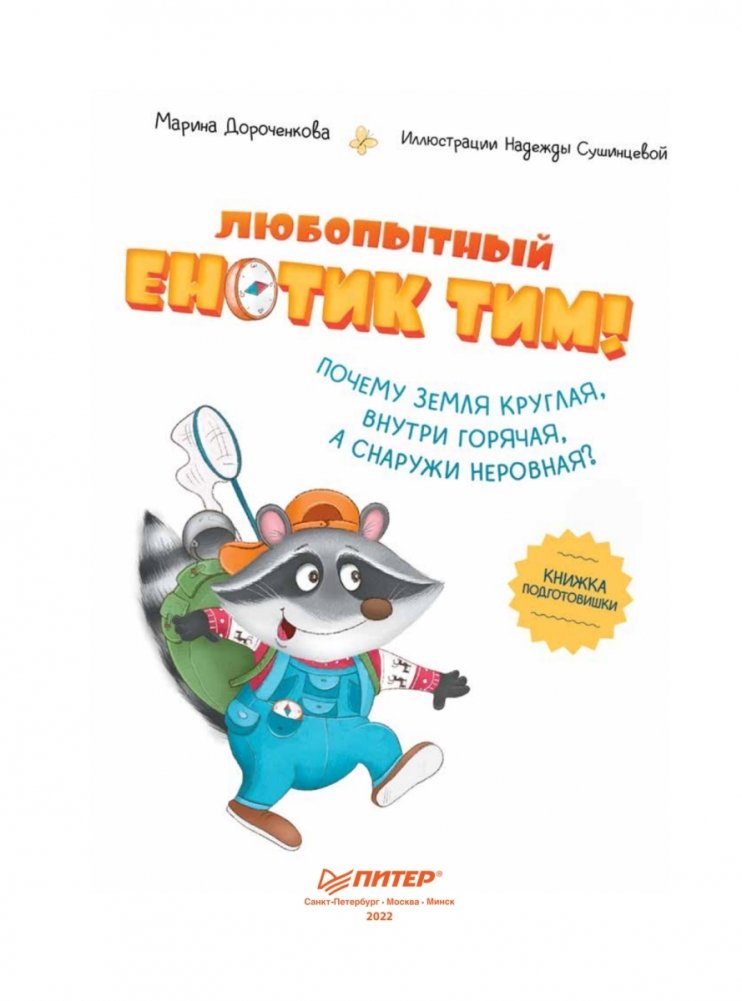Любопытный енотик Тим! Почему Земля круглая, внутри горячая, а снаружи неровная? Книжка подготовишки