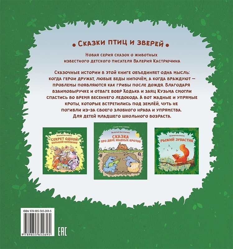 Сказочные истории в этой книге объединяет одна мысль: когда герои дружат, любые беды нипочем. А когда враждуют – проблемы появляются как грибы после дождя. Благодаря взаимовыручке и отваге бобр Ходька и заяц Кузьма смогли спастись во время весеннего ледохода. А вот жадные и упрямые кроты, которые встретились под землёй, чуть не погибли из-за своего злобного нрава и упрямства.