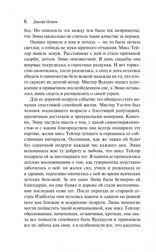 Эта история достаточно нетипичная: героиня не бедна, у нее все есть — хороший дом, любящий отец, состояние, нет только мужа. Но она и не торопится замуж, предпочитая устраивать судьбы своих подруг и знакомых и тем самым порой попадая впросак. При этом, занимаясь чужой личной жизнью, Эмма чуть не проглядела собственное счастье…