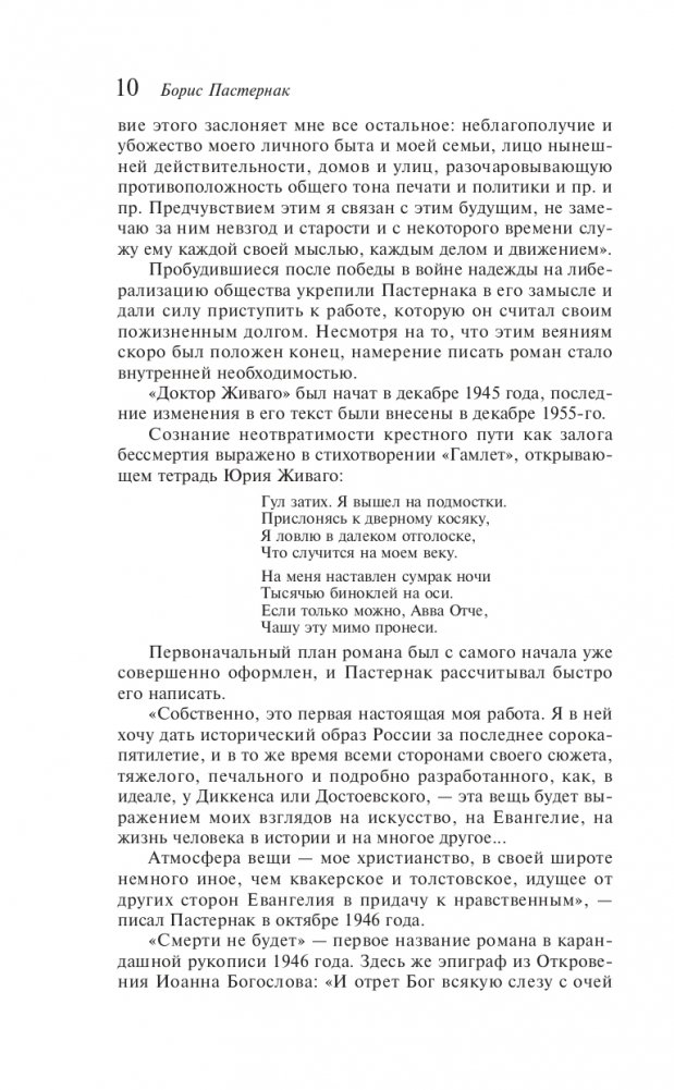 Академик Д. Лихачев назвал «Доктора Живаго» духовной автобиографией Пастернака. Возможно, это самое точное и самое краткое — поэтому не исключено, что самое ценное — описание книги. Добавить или уточнить может только сам автор: «Я пишу сейчас большой роман в прозе о человеке, который составляет некоторую равнодействующую между Блоком и мной (и Маяковским и Есениным, быть может)».