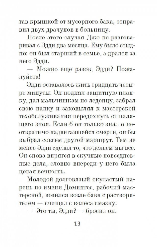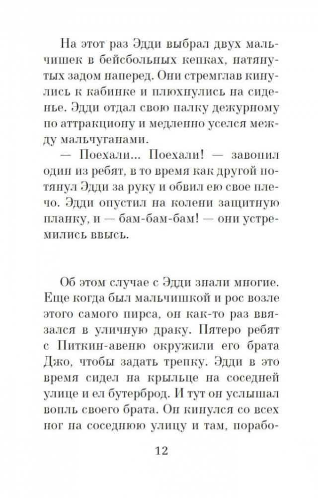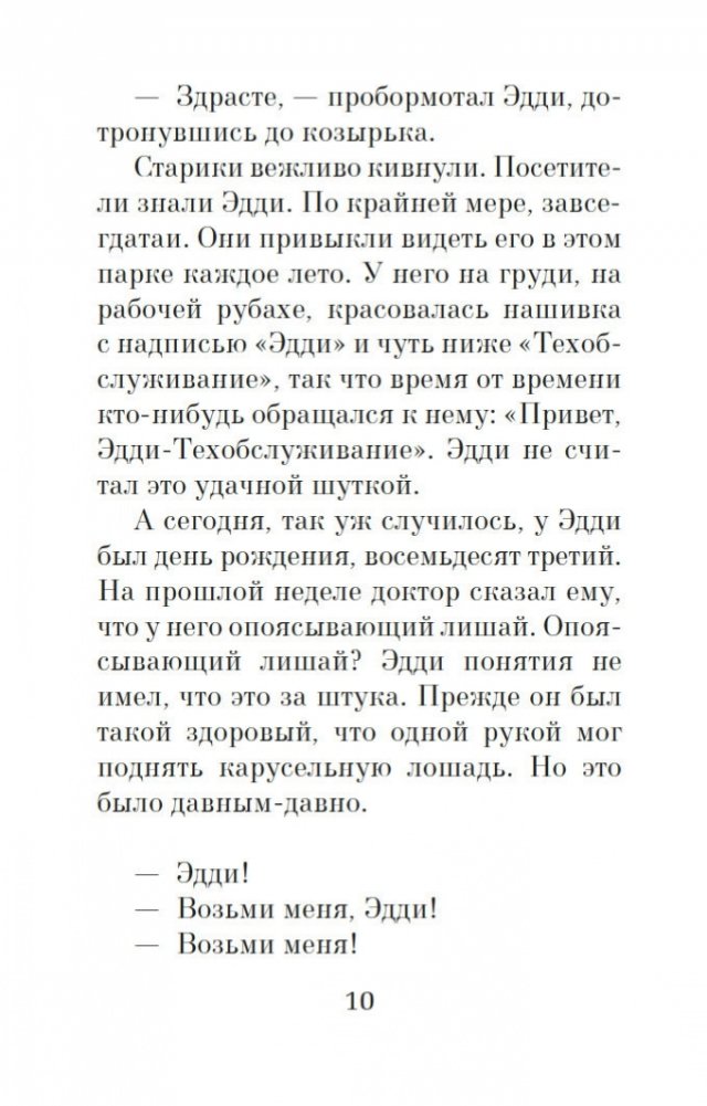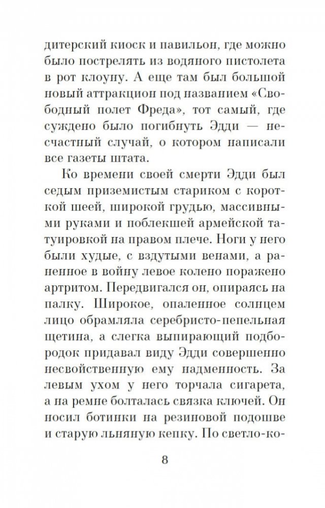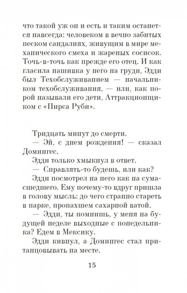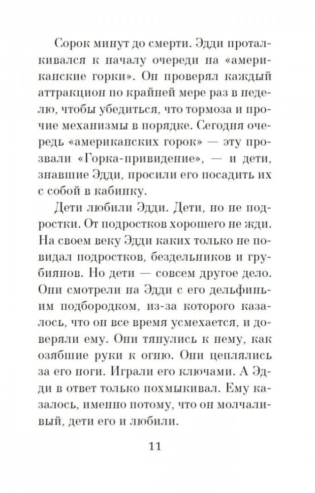 Митч Элбом (р. 1958) — известный американский писатель, журналист, сценарист, драматург, радио- и телеведущий и музыкант, чьи книги проданы тиражом более 39 миллионов экземпляров по всему миру. «Пятеро, что ждут тебя на небесах» (2003) – дебютный роман Элбома, 95 недель продержавшийся в списке бестселлеров «Нью-Йорк таймс», переведенный на 35 языков и ставший в 2004 г. основой одноименного телефильма, — повествует о старике Эдди, технике-смотрителе парка развлечений, ценой своей жизни спасшем девочку во время поломки одного из аттракционов. Оказавшись за последней чертой, Эдди встречает души пятерых людей, знакомых и незнакомых: одни оставили заметный след в его судьбе, в судьбах других оставил след он сам. С каждой из этих встреч перед героем открываются новые, неожиданные смыслы его долгой (и, как ему раньше казалось, заурядной, пресной и никчемной) земной жизни, о которых он и не подозревал в однообразной суете будней…