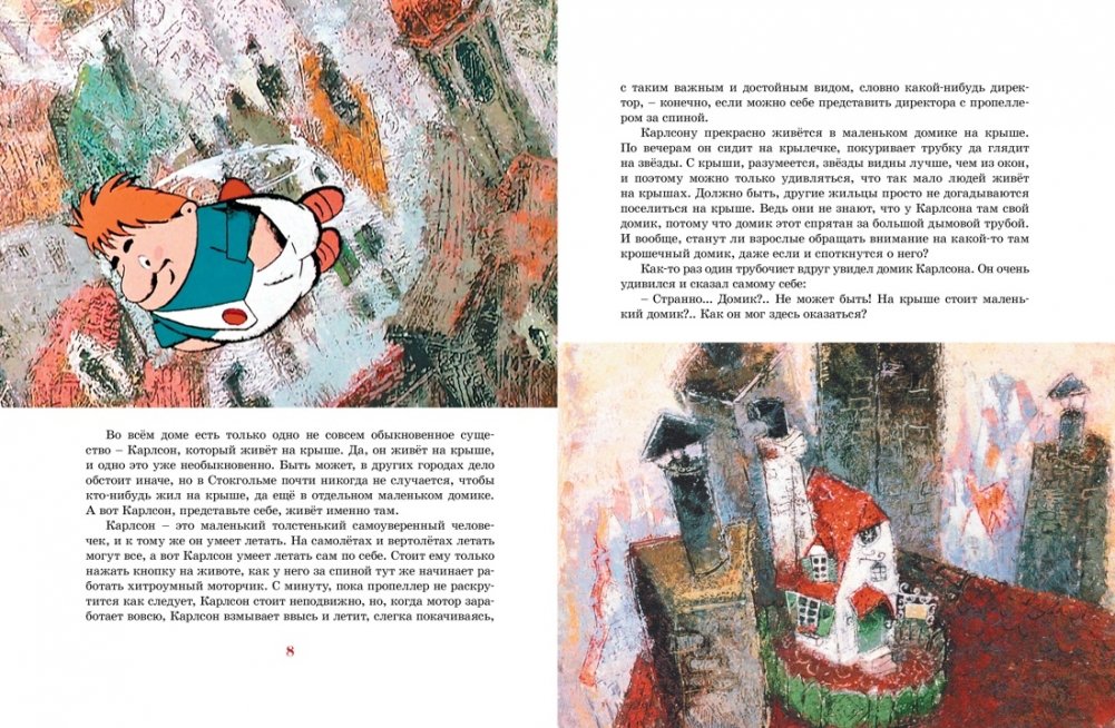 Карлсон, озорной и весёлый человечек с пропеллером на спине, – ярчайший образ беззаботного детства для многих поколений читателей. Шведская писательница Астрид Линдгрен создала увлекательные истории и запоминающихся героев. Вместе с трогательным Малышом непослушный хитрец Карлсон шалит и развлекается в своё удовольствие. Неповторимый облик любимым персонажам подарил художник Анатолий Савченко. Его иллюстрации для знаменитого мультфильма уже давно стали каноническими. Это издание сказочной истории Астрид Линдгрен, украшенное рисунками Анатолия Савченко, займёт особое место среди любимых книг в домашних библиотеках читателей.