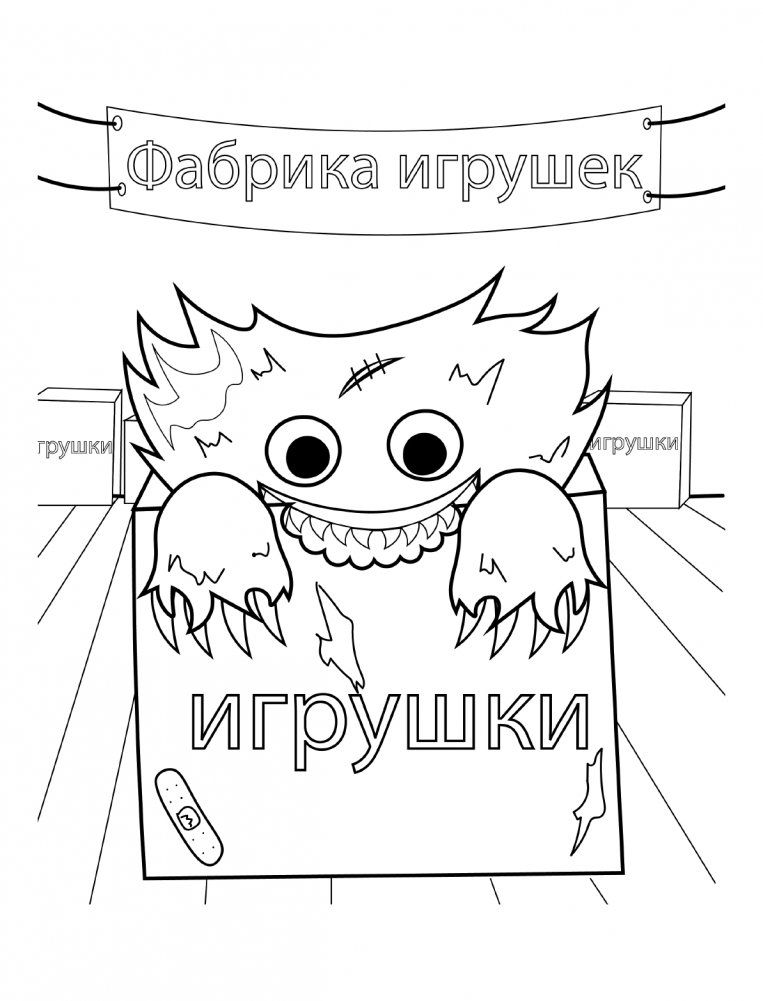 Большая раскраска с персонажами популярной игры Poppy Playtime.