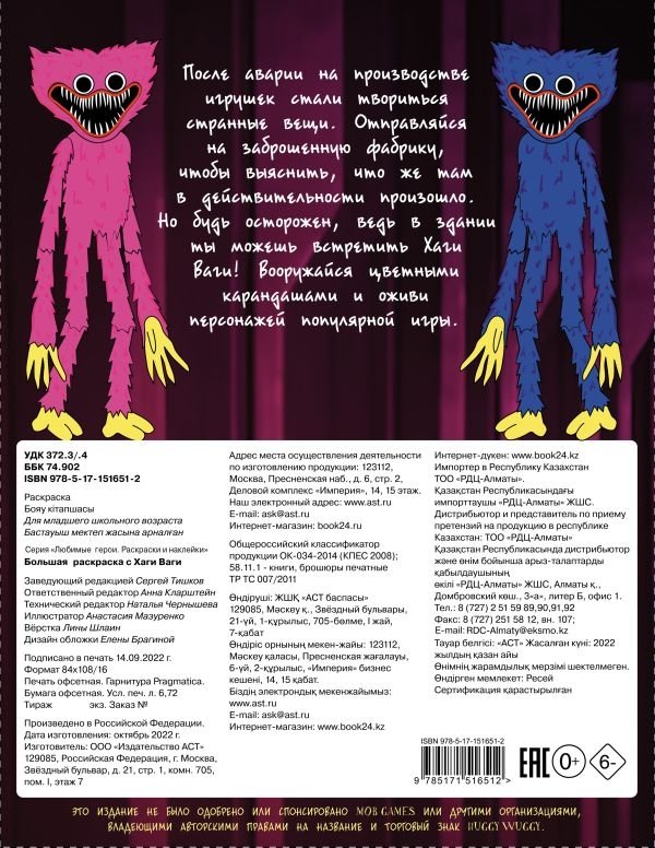 В раскраске популярные персонажи не такие страшные, как в оригинальной игре. Так что можно смело покупать эту раскраску ребёнку, требующему купить ему Хаги Ваги, как у друзей.