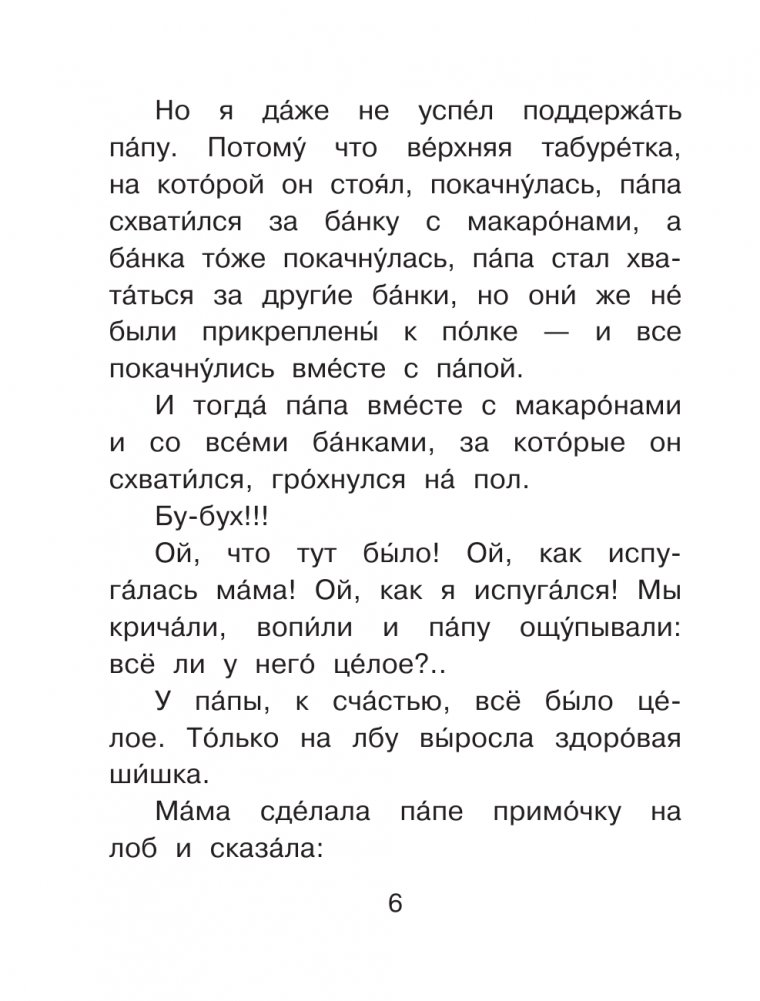 В книгу вошли весёлые истории знаменитых отечественных авторов Э. Успенского, В. Драгунского и О. Кургузова, которые подарят хорошее настроение на весь день! Вместе с непоседливыми и любознательными героями малыши узнают, зачем селёдка отправляется в Атлантику, что значит волшебное слово "сыски" и как обезьянка Анфиса впервые отправилась в детский сад. Смешные истории не только развеселят читателей, но и помогут задуматься о правилах поведения. Все слова текста даны с ударениями, чтобы помочь малышам самостоятельно познакомиться с произведениями великих классиков детской литературы.