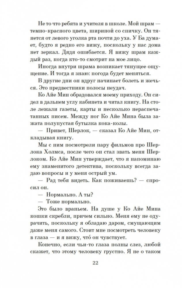 Двенадцатилетний Бо Бо — необычайно проницательный ребенок, он умеет читать эмоции людей по их глазам. И этот дар сильно осложняет жизнь мальчика, который живет со своим восьмидесятилетним дядей в небольшом городке в Бирме и страстно хочет узнать, почему отец навещает его лишь раз в год, а мать вообще не приезжает. И дядя рассказывает ему не только потрясающую историю любви Джулии и Тхар Тхара, но и о страшных событиях, которые сломали Джулию. В памяти Бо Бо остались лишь обрывки воспоминаний о пожаре в монастыре, где он жил с родителями, о ране, которую в гневе Джулия нанесла своему сыну. Однако дядя говорит, что сердце помнит все. И Бо Бо, убежденный, что может исцелить свою мать, может научить ее жить в согласии с собственным сердцем, отправляется на поиски родителей… «Сердце, которое помнит» — это превосходное продолжение романов «Искусство слышать стук сердца» и «Сердце, живущее в согласии».