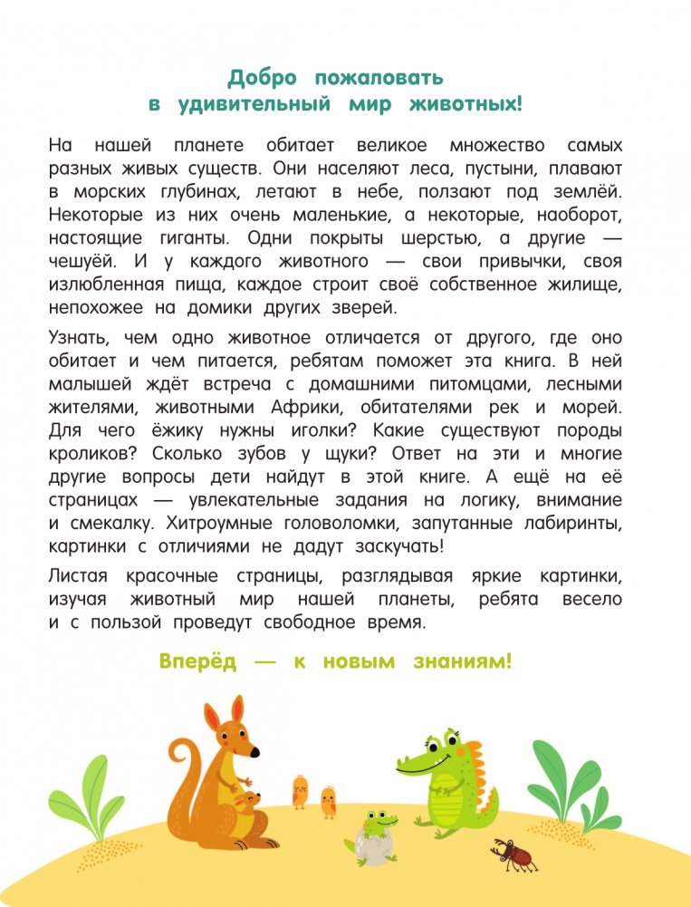 • Книга может стать первой ступенькой на пути к получению знаний о животных, населяющих нашу планету — это расширит его кругозор и пополнит словарный запас.