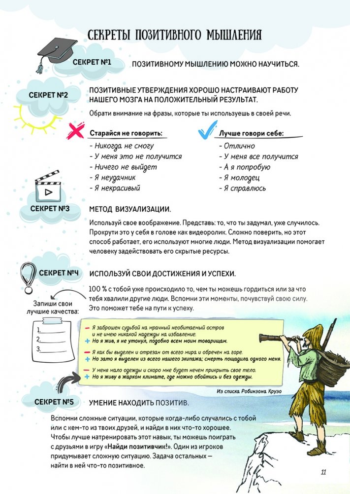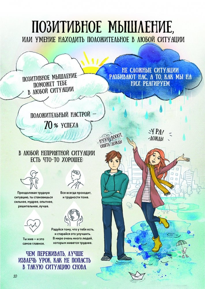 В целом это книга о том, как поступать в противоречивых ситуациях. Написали ее психологи, которые хорошо знают, с какими проблемами сталкиваются подростки. Здесь нет готовых решений, вместо этого авторы приглашают к диалогу, предлагают порассуждать, задают вопросы, над которыми нужно подумать. Схемы, тесты, психологические игры и красочные иллюстрации помогут разобраться в самых сложных вопросах, научат принимать правильные решения. Тинейджеры и их родители смогут лучше понимать друг друга, разобраться в своих эмоциях и сделать свою жизнь более осознанной и счастливой.