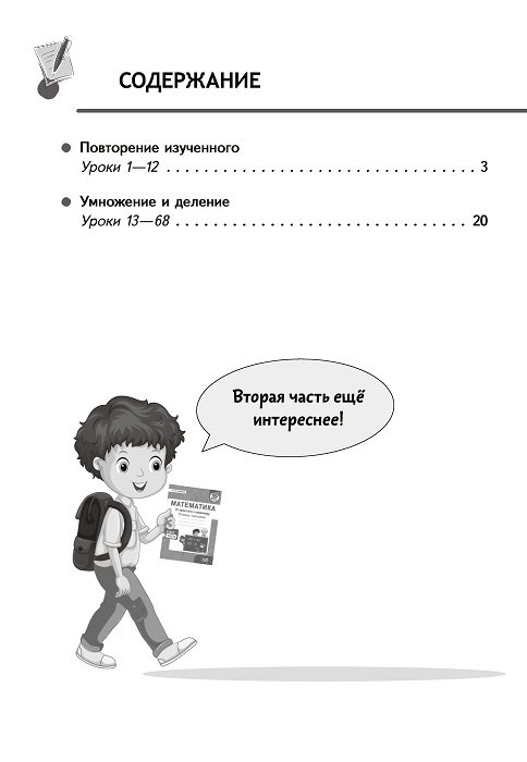 Пособие для учащихся «Математика. От простого к сложному. 3 класс. Тетрадь-тренажер» содержит дифференцированные задания, полностью соответствующие программным требованиям и составленные на основе действующего учебника по математике для 3-го класса (авторы Г. Л. Муравьева, М. А. Урбан).