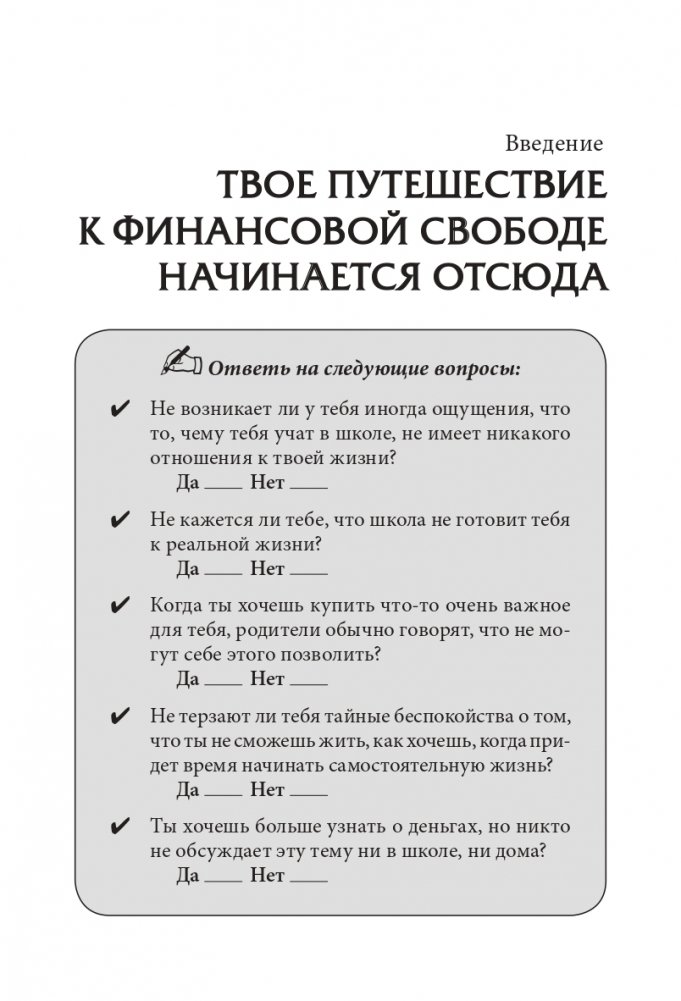 Знания, которые ты получаешь в школе, тебе вряд ли когда-нибудь пригодятся? Учителя не готовят тебя к жизни в реальном мире? Значит, эта книга — для тебя! Она поможет тинейджерам уже сегодня сделать правильный выбор — именно тот выбор, благодаря которому люди становятся по-настоящему богатыми. Роберт Кийосаки дает возможность каждому подростку получить элементарные основы финансовой грамотности и добиться своей цели — научиться делать деньги.