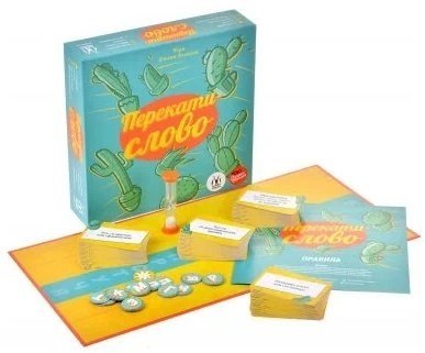 "Перекати-слово" – это словесная вечериночная игра, рассчитанная на две команды игроков. В ней не нужно объяснять слова – их нужно подбирать самостоятельно таким образом, чтобы они включали как можно больше букв, находящихся на поле. Ведь когда вы назовёте слово, его буквы сдвинутся на поле в сторону команды противников – а когда пять букв будут вытеснены за его пределы, вы выиграете! Звучит совершенно несложно, но слово должно соответствовать условию с карточки – например, надо будет назвать какую-то сладость или пятнистое животное. Проверьте свой вокабуляр!