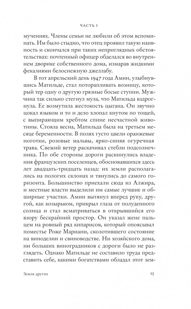 «Рождество под кипарисами» — первая часть трилогии «Страна других». Это история, основанная на событиях из жизни бабушки, дедушки и матери Лейлы Слимани, автора романа. Семья Бельхадж, живущая на ферме в пригороде Мекнеса, вызывает недоумение и неприязнь как французов, так и марроканцев. И действительно, где это видано, чтобы араб женился на француженке. Матильда, познакомившись с Амином во время второй мировой, после войны переезжает к мужу на родину, чтобы вместе с ним окультуривать неплодородную землю, купленную еще его отцом. Местные с подозрением относятся к Амину, который говорит по‑французски без акцента. Над Матильдой злобно посмеиваются француженки на главных улицах Мекнеса, презрительно глядя на ее огрубевшие руки и стоптанную обувь. А их дочь Аиша, тихий и мечтательный ребенок, терпит насмешки одноклассниц из католической школы. Да и внутри семьи не все гладко — уж слишком много различий между культурами, темпераментами и желаниями мужа и жены. Но семья есть семья, и в особенности это ощущается во времена больших потрясений. В Марокко созревает национальное движение, рабочие жгут французские владения... Что станет с семьей, не принадлежащей ни к тем, ни к другим? Избегут ли они надвигающейся опасности?