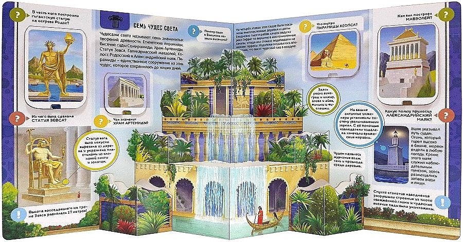 Книги из серии «Энциклопедия открытий» от торговой марки Malamalama — это настоящая сокровищница удивительных фактов и ответов на популярные вопросы маленьких почемучек. Книга «Древний мир» отправляет читателя в путешествие в колыбель цивилизации. На страницах книги появляются древние хижины и египетские пирамиды, улочки греческих полисов, величайшие открытия всех времён и народов, знаменитые чудеса света. Объёмные POP-UP конструкции и красочные иллюстрации сделают изучение запоминающимся и лёгким.