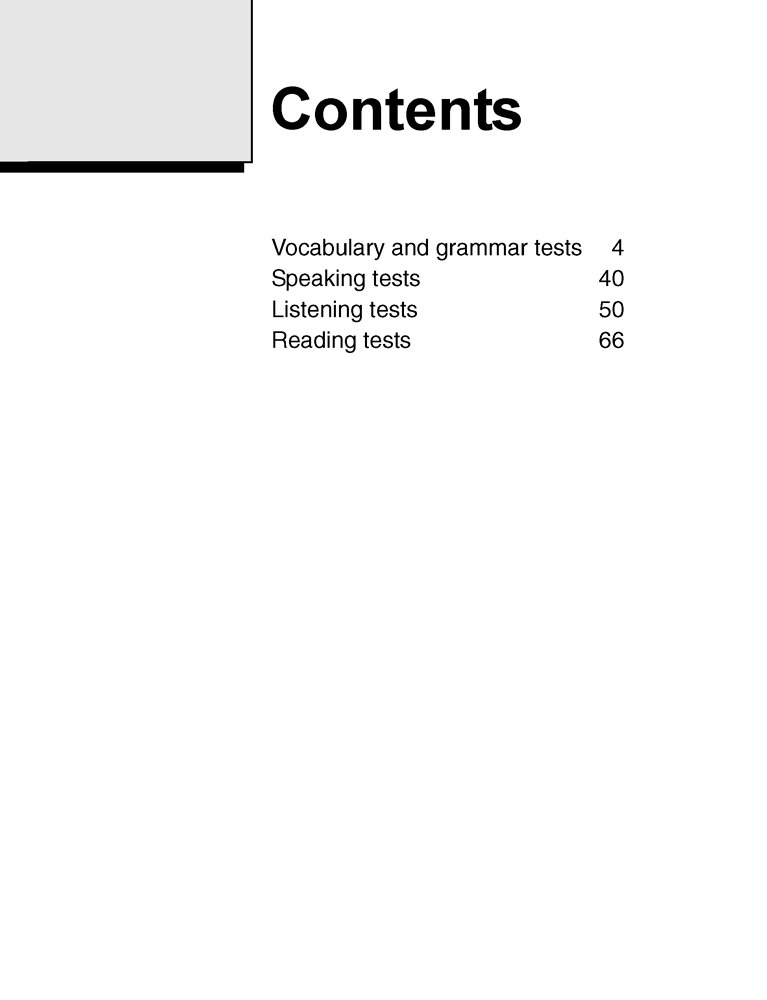 Сборник тестов является составной частью учебно-методического комплекса «Волшебная шкатулка» для 3 класса, в который также входят книга для ученика, рабочая тетрадь, книга для чтения, аудиоприложение, книга для учителя, набор тематических карточек и тетрадь-словарик. Сборник содержит лексико-грамматические тесты и тесты на контроль аудирования, говорения и письма.
