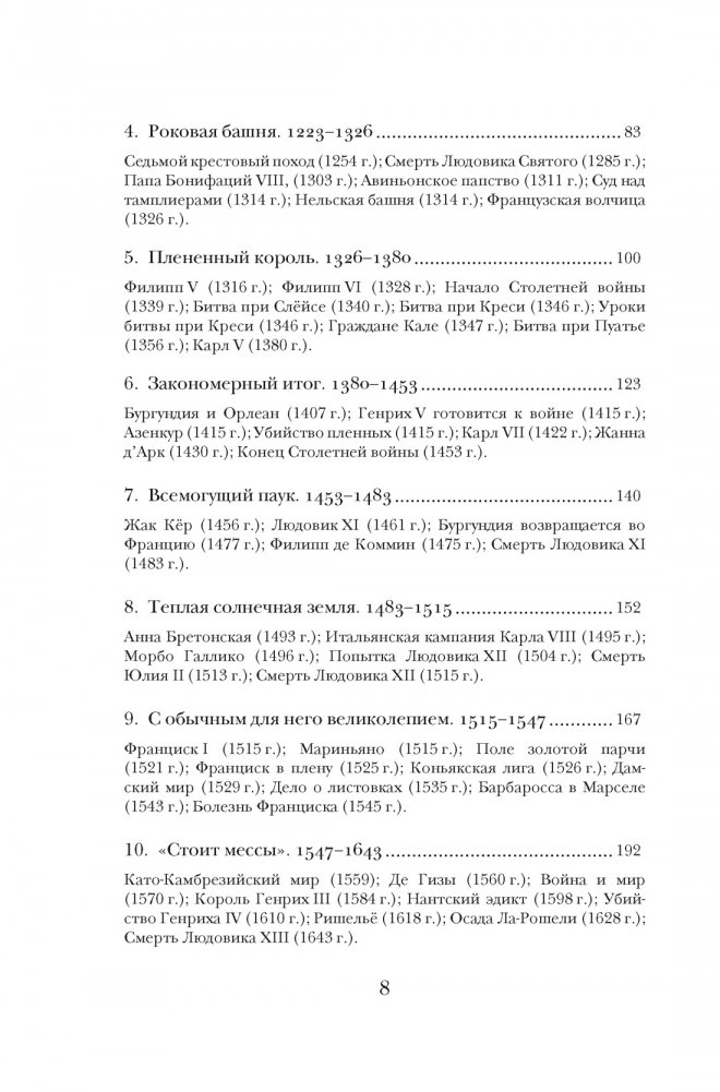 «История Франции — это не только Наполеон, Жанна д’Арк и Людовик XIV. Я расскажу о судьбе несчастных тамплиеров в руках одиозного Филиппа Красивого и о событиях, произошедших с его невестками в Нельской башне; о прекрасной мадам де Помпадур и противоречивой мадам де Ментенон; о Луи-Филиппе, почти забытом сегодня, но, наверное, лучшем короле в истории страны; и это только начало. Первая глава в быстром темпе сопроводит нас от галлов и Юлия Цезаря до Карла Великого, охватив около восьми столетий. Последняя глава расскажет о пяти годах Второй мировой войны — 1945 год заканчивает одну эпоху и начинает новую». (Джон Норвич)