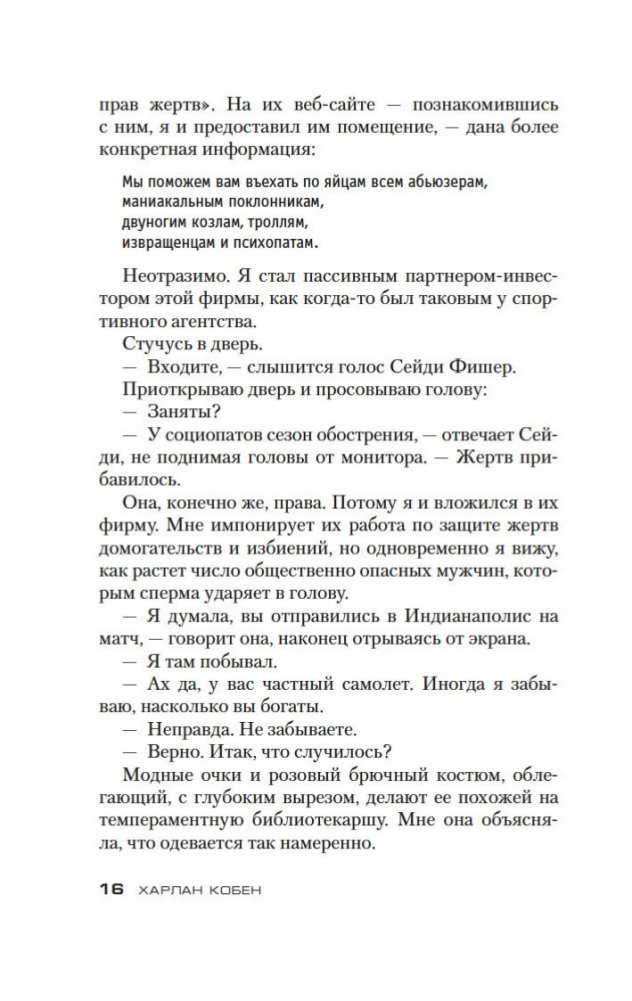 В юности Патриша Локвуд пережила страшное потрясение: на ее глазах убили отца, а саму девушку похитили. При этом из дома исчезли две ценные картины. Несколько месяцев Патришу держали в жуткой лесной хижине, где впоследствии были обнаружены трупы девяти молодых женщин. Патрише чудом удалось сбежать, похитителей так и не нашли, а украденные картины бесследно исчезли. И вот спустя двадцать лет в пентхаусе некоего убитого мужчины находят одну из похищенных картин и кожаный чемодан с инициалами Вина Локвуда, кузена Патриши. Впервые за многие годы у Федерального бюро расследований появляется зацепка в этом глухом деле. Вин, в молодости сотрудничавший с ФБР, по просьбе фэбээровцев начинает поиски… Ведь у него есть то, чего нет у них: личная заинтересованность, редкостная удачливость и собственное представление о справедливости…
