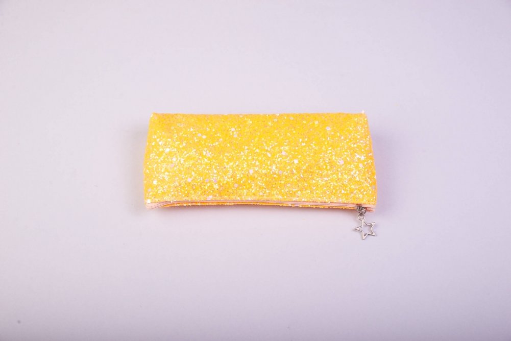 Пенал-косметичка (с блестками, на молнии, лимонный)