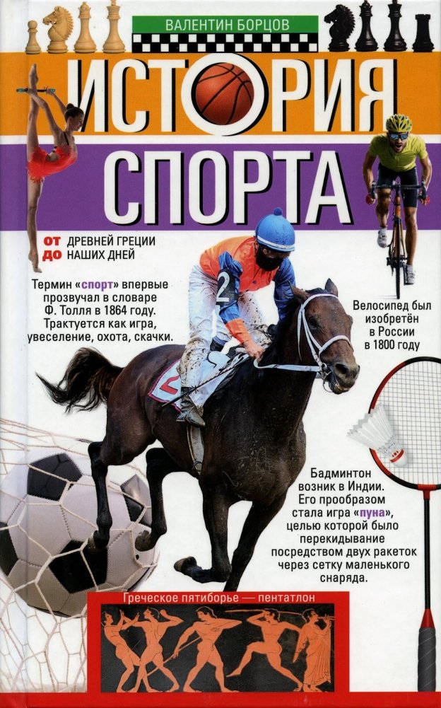 Шли времена, и люди придумывали новые, порой очень странные на наш современный взгляд спортивные развлечения, такие как сбивание белок с деревьев, перетягивание угрей, драки рыбаков на лодках и прыжки через спины быков... Дальше — больше, и вот уже в Древней Греции проходят первые Олимпийские игры, и с этого момента история спорта стремительно развивается. В небольшой книге, к сожалению, нельзя рассказать полную историю такого значимого для нашей цивилизации явления, но вы прочтёте интересную информацию о самых популярных видах спорта, выдающихся спортсменах, международных спортивных организациях и ещё много, много интересного.