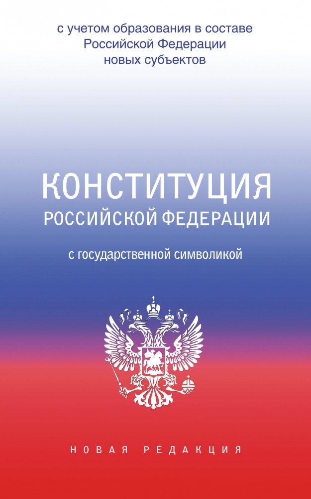 Конституция Российской Федерации в новой редакции с учетом образования в составе Российской Федерации новых субъектов: Донецкой Народной Республики, Луганской Народной Республики, Запорожской и Херсонской областей. В издании приводятся Федеральные конституционные законы о флаге, гербе и гимне, которые устанавливают их описание и порядок официального использования.