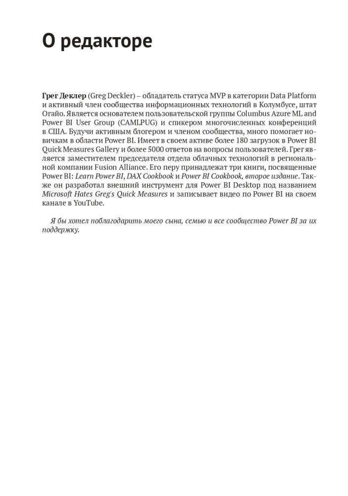 В книге излагаются основы моделирования данных с точки зрения языка DAX. Разбираются реальные бизнес-сценарии, связанные с учетом складских запасов, прогнозированием, взаимодействием между отделами в рамках компании и безопасностью данных. Прорабатываются нюансы моделирования данных и распространенные ошибки, допускаемых при построении сложных агрегаций. Издание поможет в построении мощных аналитических решений на основе данных с использованием всего потенциала доступных инструментов.