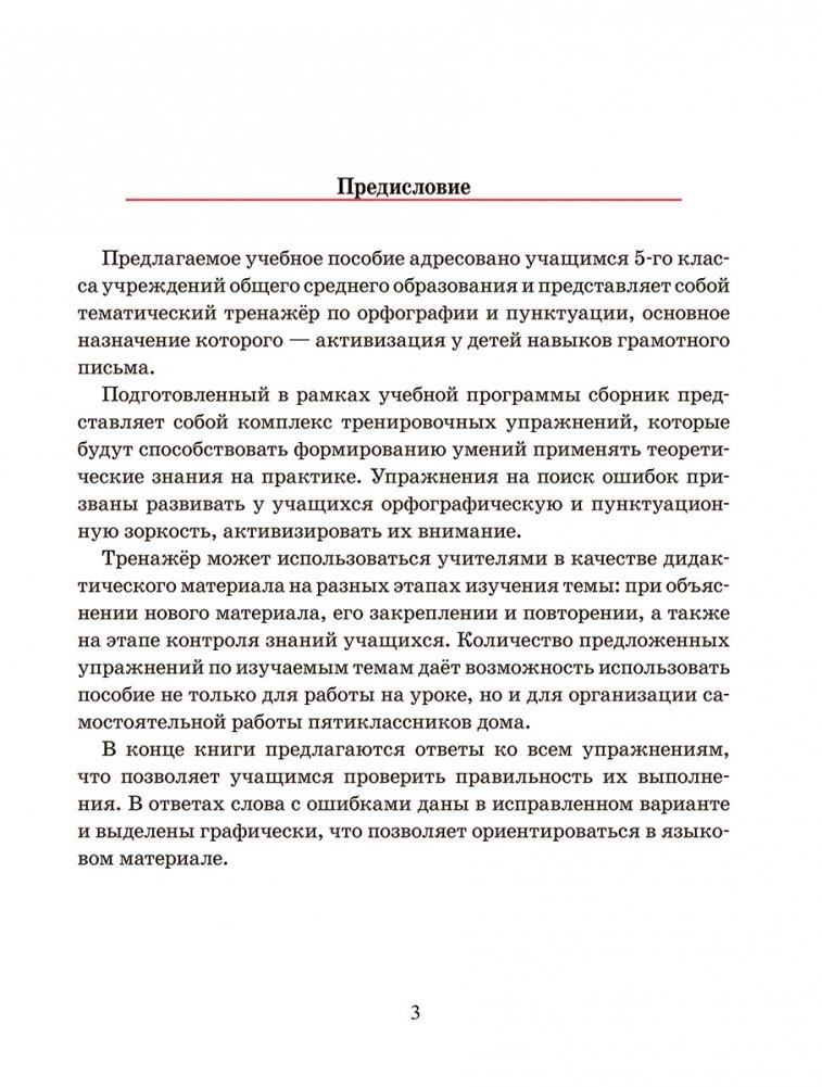 Пособие представляет собой сборник упражнений по орфографии и пунктуации, составленный в соответствии с учебной программой по русскому языку для 5 класса. Тренажёр предназначен для закрепления изученного на уроках русского языка материала, а также для организации дополнительных занятий с учащимися дома. Написанный в рамках школьной программы, сборник представляет собой комплекс тренировочных упражнений, которые будут способствовать формированию умений применять теоретические знания на практике. Упражнения на поиск ошибок призваны развивать у учащихся орфографическую и пунктуационную зоркость, активизировать их внимание. В конце книги приводятся ключи-ответы ко всем упражнениям, что позволяет проверить правильность их выполнения.