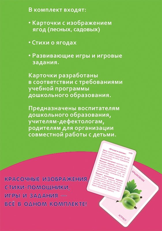 Дидактические карточки «Ягоды» (на русском и белорусском языках). 4-7 лет