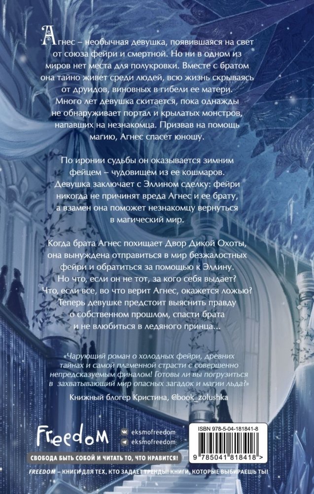 Когда брата Агнес похищает Двор Дикой Охоты, она вынуждена отправиться в мир безжалостных фейри и обратиться за помощью к Эллину. Но что, если он не тот, за кого себя выдает? Что, если все, во что верит Агнес, окажется ложью? Теперь девушке предстоит выяснить правду о собственном прошлом, спасти брата и не влюбиться в ледяного принца…