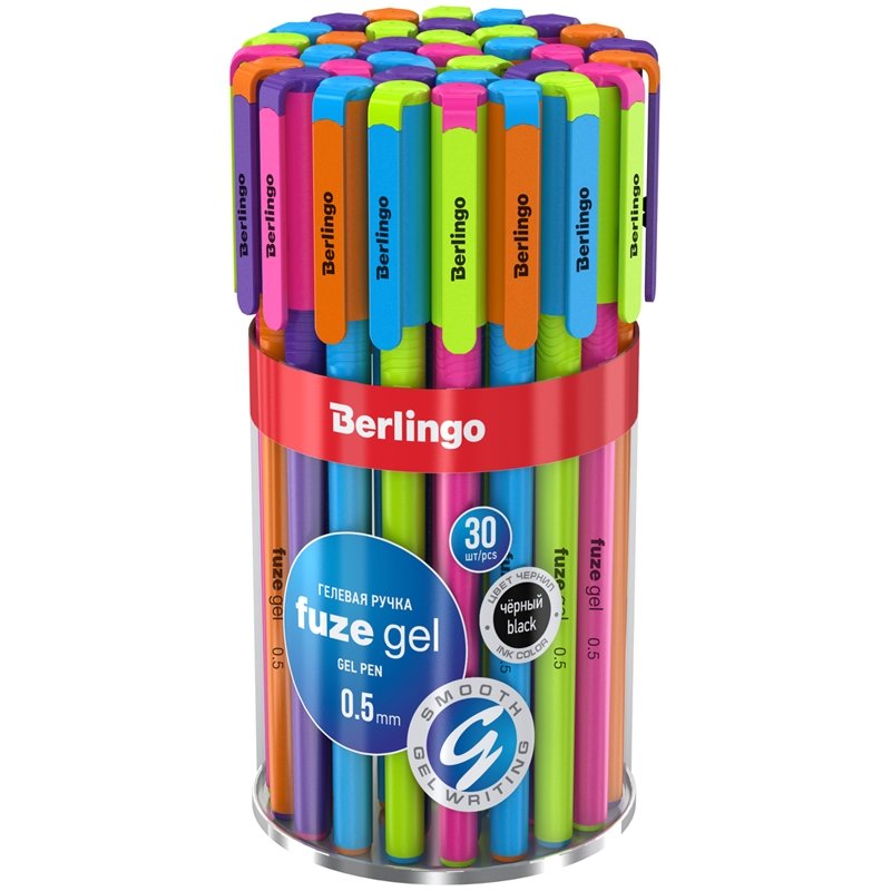 Ручка гелевая Berlingo "Fuze gel" черная, 0,5 мм, корпус ассорти. Арт. CGp_50017