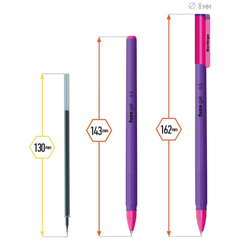 Гелевая ручка Berlingo Fuze Gel из оригинальной кросс-серии Fuze привлекает к себе внимание контрастным сочетанием цветов в её дизайне. Мягкий резиновый грип и приятное бархатистое покрытие препятствуют скольжению пальцев при письме и создают дополнительное удобство при использовании ручки. Качественные чернила обеспечивают чёткое и ровное письмо. Диаметр пишущего узла составляет 0,5 мм, благодаря чему получается тонкая, аккуратная линия.