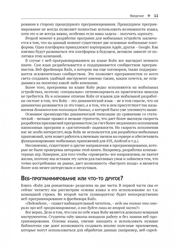 Перед вами книга для самостоятельного знакомства с основами языка Ruby для начинающих разработчиков любого возраста. Последовательное изложение материала позволит не только освоить тонкости языка в удобной игровой форме, но и заложить твердый фундамент для дальнейшего обучения. Многочисленные советы, хитрости и приемы основаны на более чем двадцатилетнем опыте работы автора в российских и зарубежных компаниях - для многих учеников эта книга стала первым шагом на пути смены карьеры. Упражнения и задания, а также многочисленные иллюстрации помогут во всех тонкостях освоить материал.