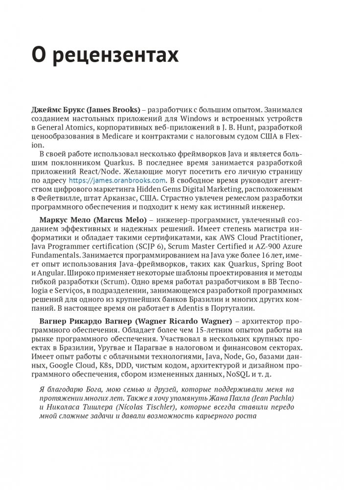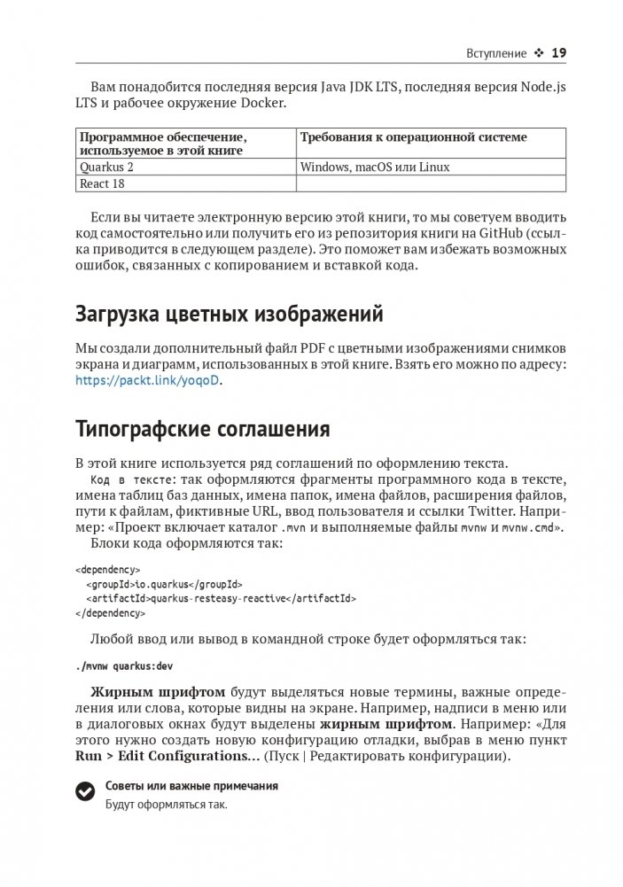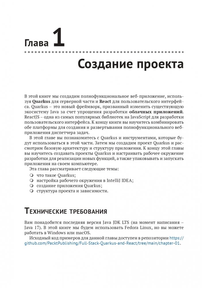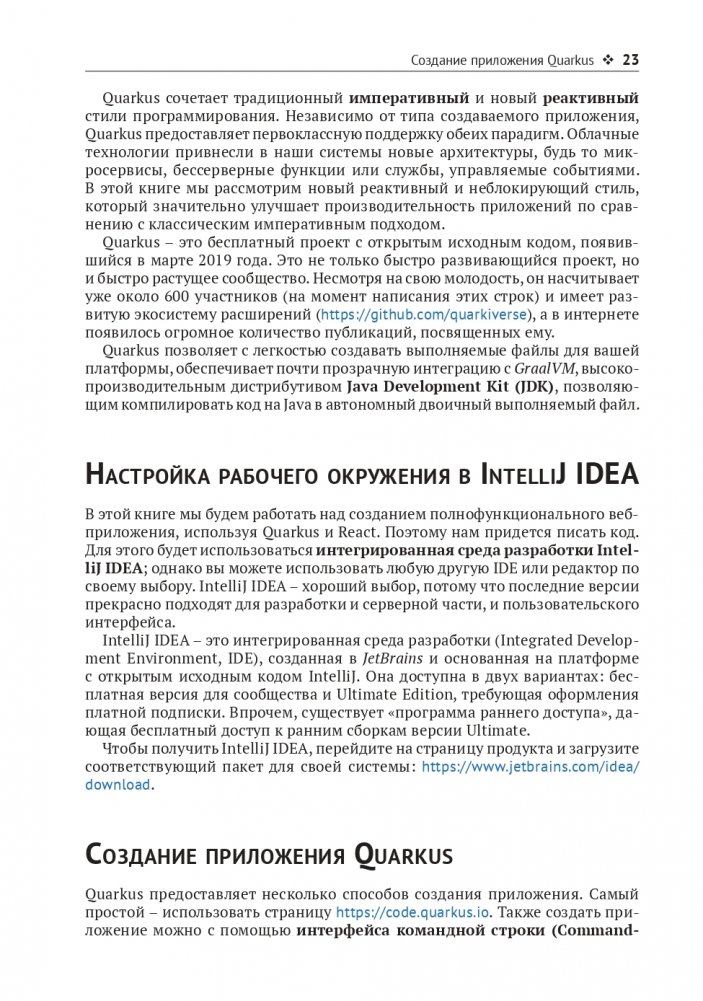 Книга предназначена для разработчиков серверных веб-приложений и веб-интерфейсов, имеющих базовые знания и опыт работы с Java или JavaScript и желающих освоить Quarkus и React для расширения своих навыков.