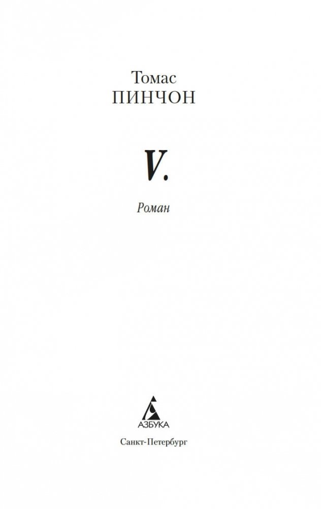 Томас Пинчон — наряду с Сэлинджером «великий американский затворник», один из крупнейших писателей мировой литературы XX, а теперь и XXI века, после первых же публикаций единодушно признанный классиком уровня Набокова, Джойса и Борхеса. В его дебютном романе «V.», удостоенном Фолкнеровской премии и вошедшем в шорт-лист Национальной книжной премии США, читатели впервые познакомились с фирменной пинчоновской одержимостью глобальными заговорами и тайными пружинами истории — и навеки очаровались. Здесь пересекаются пути Бенни Профана, «шлемиля и одушевленного йо-йо», и группы нью-йоркской богемы, известной как Цельная Больная Шайка, и Херберта Шаблона, через множество стран и десятилетий идущего по следу неуловимой V. — то ли женщины, то ли идеи... Перевод публикуется в новой редакции.