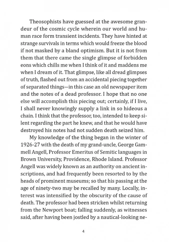 Перед вами сборник коротких рассказов знаменитого писателя-мистика Говарда Филлипса Лавкрафта. Эти истории положили начало целой литературной вселенной, названной "Мифами Ктулху". Огромная и загадочная вселенная Лавкрафта, нашедшая столько ярых поклонников и почитателей по всему миру, захватывает и очаровывает всех любителей мистики и фантастики. Последователи писателя дополняют "Мифы Ктулху" новыми книгами, фильмами и компьютерными играми. Вселенная ужасов Лавкрафта - жемчужина мировой культуры и актуальный мейнстрим нового века.