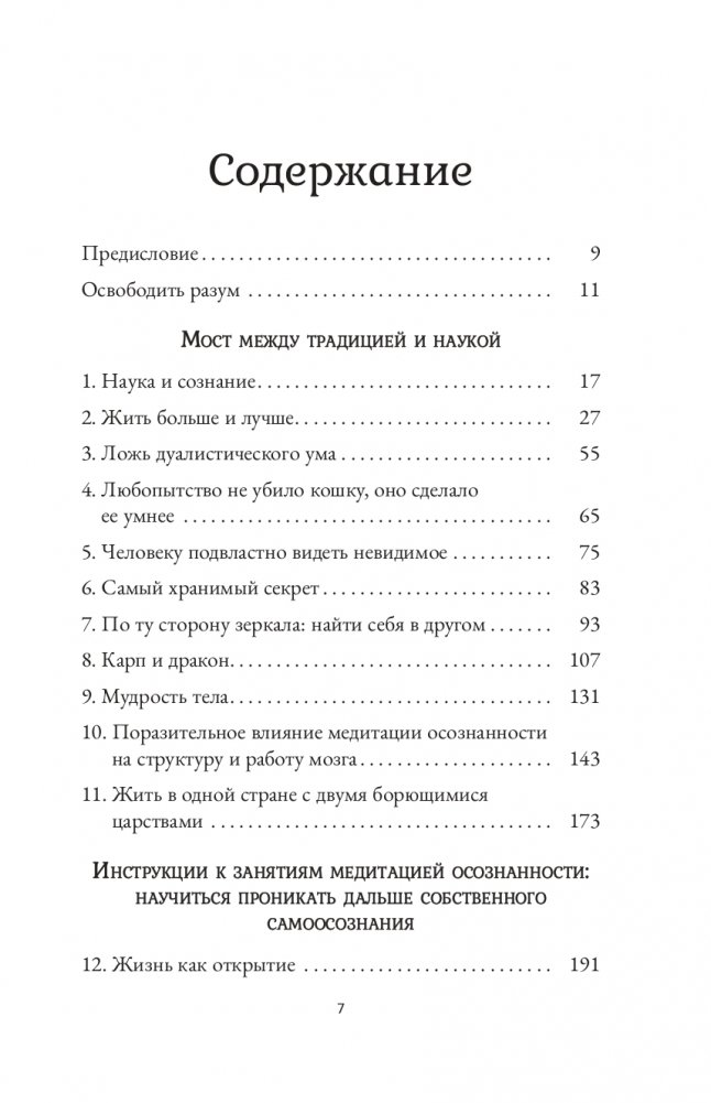 Благодаря солидной научной основе и практическим советам книга научит вас оставаться спокойными посреди всех жизненных бурь. Вы сможете полностью погружаться в текущий момент и воспринимать ту реальность, которая обычно от нас ускользает. Медитация осознанности позволяет понять, насколько умственные проекции изменяют наше восприятие происходящего.